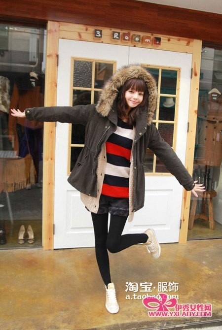 外套,V领剪裁完美衬托小脸印象。外搭收腰连帽工装风衣外套,搭配出俏皮青春感。