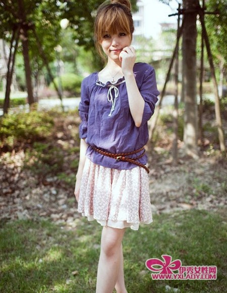 甜美中袖方领系带棉质荷叶边上衣,非常可爱耀眼的紫色,胸前是绑带棉花边,更有日系的感觉。