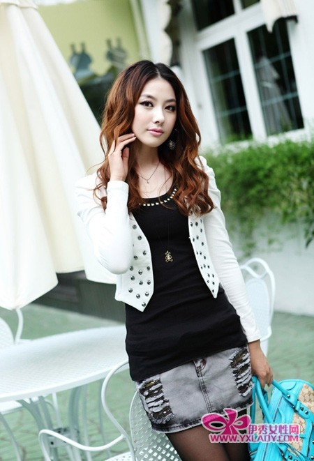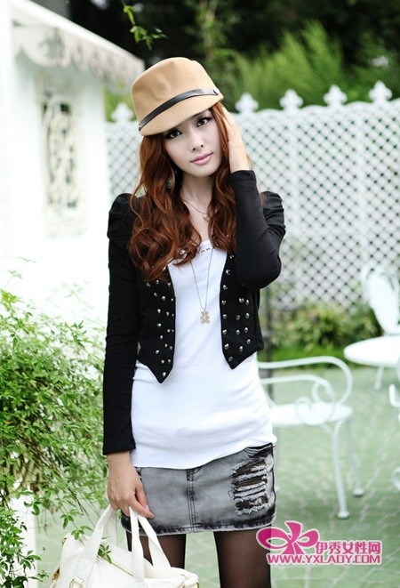 时尚的铆钉融入到了今秋的西装里,演绎流行的欧美范儿,精致俏皮的褶皱泡袖,短款的设计,很时尚的欧美明星范儿。