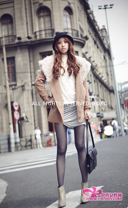 慵懒欧洲驼色,兔毛领,毛呢大衣,很有设计感,超有明星范儿。