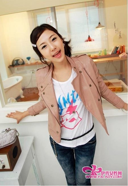 开身、翻领、竖领是这款皮衣很有特色的三种穿法,没有人能抗拒粉色带来的甜蜜味道,古铜色的按扣就像抹不去的痕迹。采用立体裁剪设计,英国皇族肩章修饰更显气质。