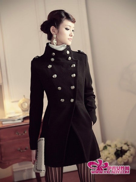 军装风很浓烈的一款大衣,立领的设计更加凸显了雷厉风行的气质,让女人温婉中透露个性,开叉的下摆极富个性,收腰的设计深受MM们喜欢。