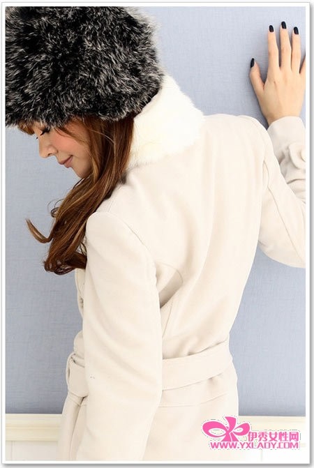 兔毛立领设计,十分保暖,绵羊绒的材质柔软舒适,白色的颜色让人很容易就联想到雪花飞舞的冬季,烂漫而美好。