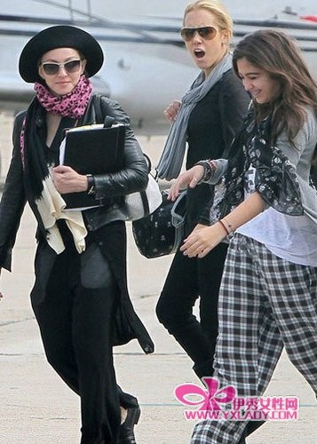 黑色休闲款小皮衣搭配长款罩衫下身宽松休闲裤的造型仿佛也只有麦当娜能穿出如此另类混搭的时尚韵味。凌乱却个性十足。