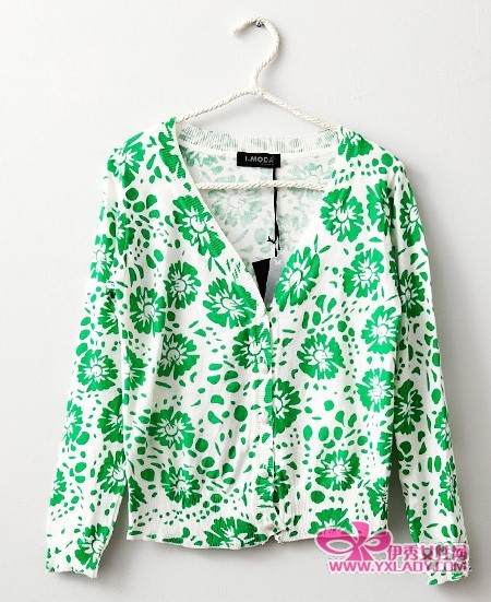 扶桑印花V领短版针织外套,代表渡假系风情的扶桑花印染与针织结合。充满轻松气氛~让甜心在秋风徐徐下一样可爱迷人!饱和的色彩上也更加加跳脱出岛国风情,长度适中的短版外套让妳自由穿搭中活化了单品特色呢!