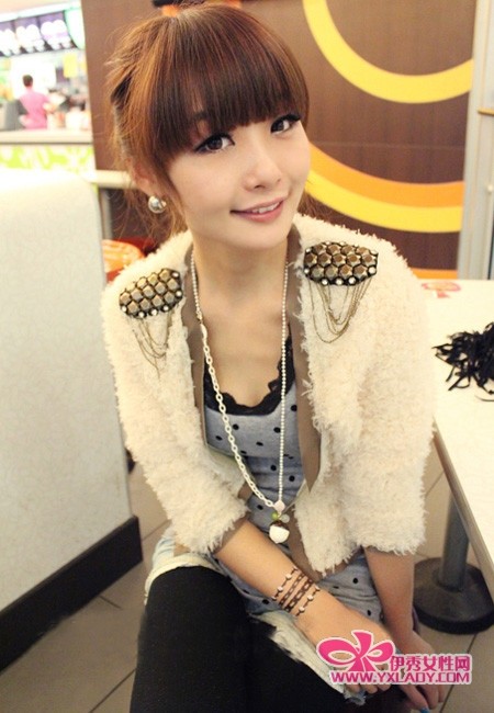 毛绒绒的纯白色小外套,洋溢着俏皮可爱的淑女气息,整洁的色彩,带来浪漫的温馨气息,铆钉与流苏的精致小肩章,最具流行的时尚元素,充满了潮流感。