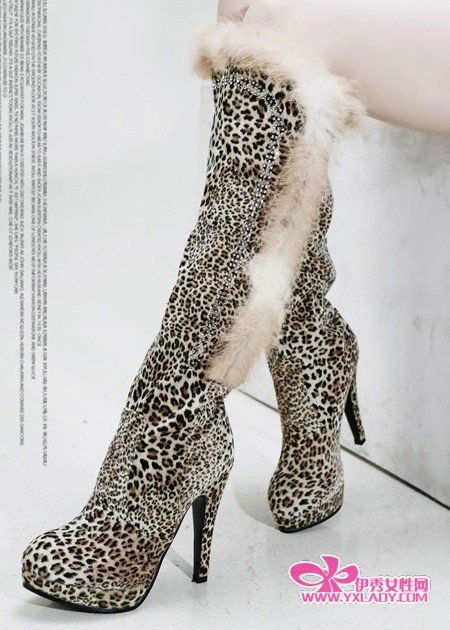 华丽时尚的豹纹运用在了长靴上,散发着辛辣的性感风,俏丽的皮草装点,让靴靴立即呈现奢华的时尚色彩,精致的水台底,酷酷的时髦风范。