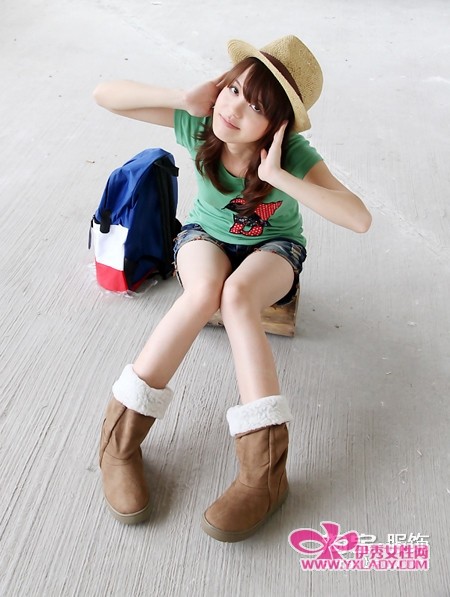 卡其色的雪地靴很有OL的味道,但是混搭蓝色POLO衫和牛仔裤,休闲感就强烈很多了,一双百搭的靴子更是时尚的焦点,在您周末外出更能享受轻松时刻。