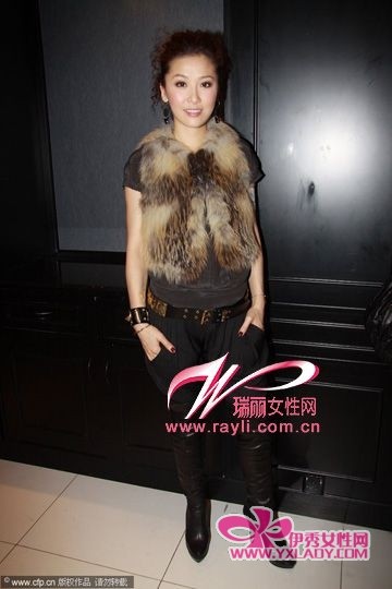 动物纹的皮草马甲狂野而不失高贵,让周丽淇气质更佳。
