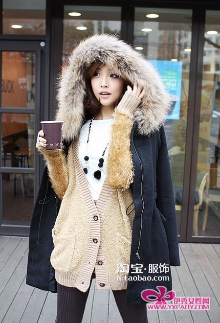 毛毛帽子收腰棉衣外套,内里夹棉,冬天里穿更加温暖。修身的立体剪裁,穿起来也更加显瘦。腰间抽绳,可以根据需要调节,更加方便穿脱。