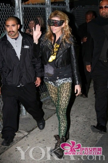 黑色的小皮衣搭配黑色T下身的绿色豹纹丝袜相当惹眼。半透明的色彩配上系带短靴的搭配惹火十足。