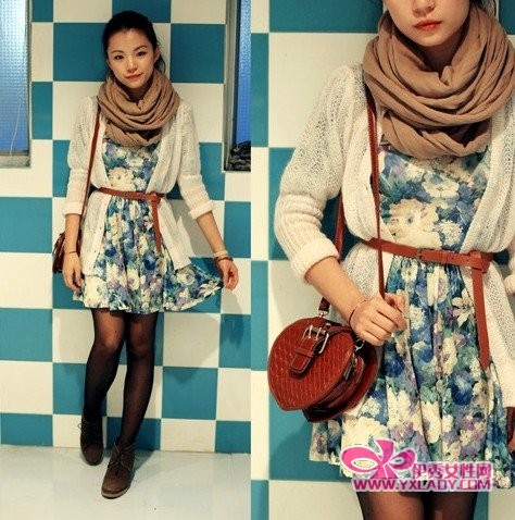 :棉麻围巾刚好制服了碎花的浮躁和不安分感,上班或者逛街,这样的搭配都很何时已。