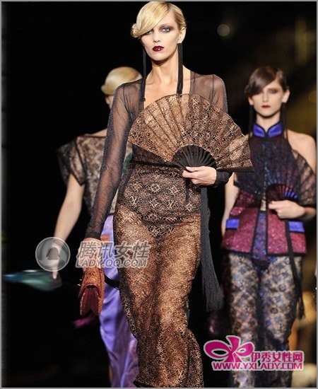 这一季的Louis Vuitton小马哥给大家带来惊艳的中国风,盘扣,对襟,兽纹,撞色,透视,相当给力。金色用来诠释透视装,更多了一份奢华的高贵与宫廷气场。不能比拟的中国文化被运用其中,让老外们惊叹不已。