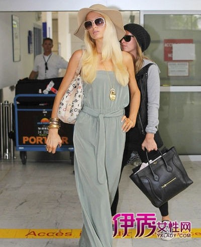 帕丽斯-希尔顿(Paris Hilton) 宽大的阔腿裤,可以对比体现出身材的苗条,配上厚防水台高跟鞋,隐形增加高度。抹胸的款式不凸现腰部,只增强整体效果。中间垂下的腰带也不失为一种装饰。