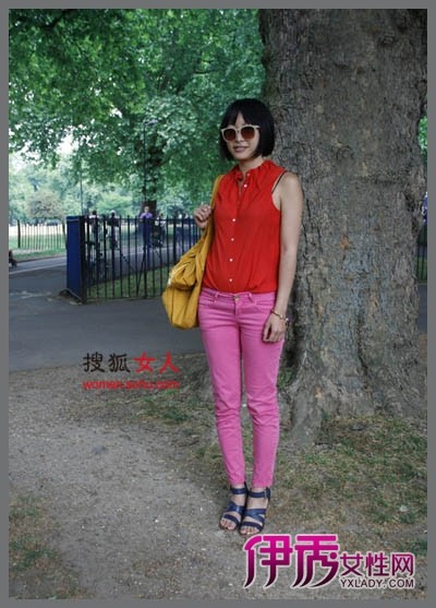 小编点评:红粉俏佳人就说的是她吧!只要敢穿就没有不可能。搭配两件提升女人气质的单品:一双绑带高跟鞋和一个精美的背包,简单随意中透露出精致和干练。