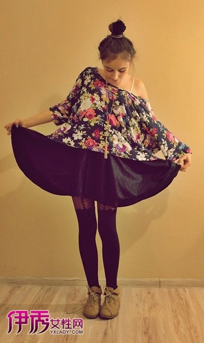 布满鲜花的连衣裙有着黑色的深沉内衬,这样就不会轻易走光,让你感觉更加安全。