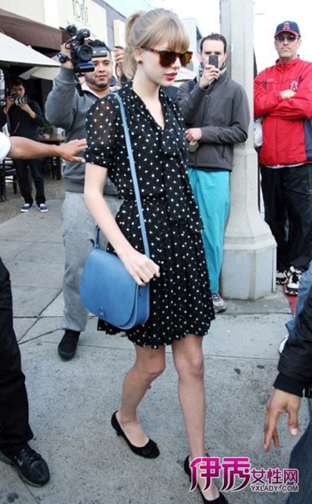 Taylor Swift这个蓝色的长肩带包包来自RALPH LAUREN,简约的包款,柔和的线条非常百搭,是一款搭配度很高的包包。