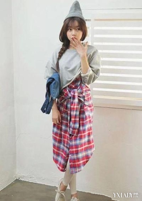 示范搭配:胡思而卫衣+格纹衬衫+打底长裤+白色运动鞋