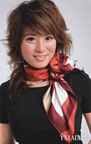 如果想让自己的颈部立刻成为别人注目的焦点,建议采用此种系法。鲜亮的丝巾,让你的端庄笑容立刻变得生动起来。开在颈间的花朵,即使在寒冬,也能给人带来温暖和煦的感觉。色彩艳丽的丝巾,丝毫不显稚气,而且更时尚高雅。