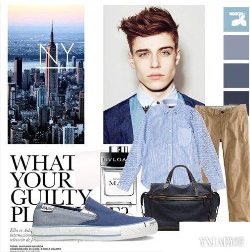 4.英伦绅士感十足,浅蓝色的质感衬衫把品位带出来,卡其休闲裤低调而干净,converse脱穿的休闲夏日新款,宝格丽的东方木香香调男士香水喷雾,都散发着男性出色个性和魅力。