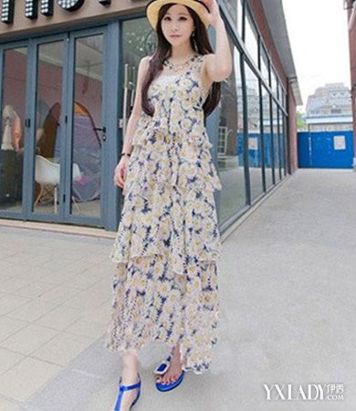 【图】欣赏超大摆碎花雪纺长裙 女神飘逸登场
