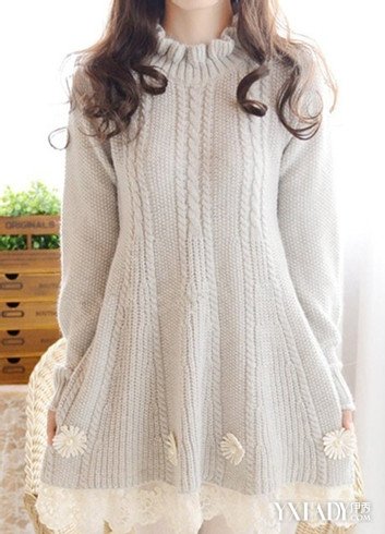 已经很久没有穿过粗线毛衣的女生们,再次见到这么匠心独运的粗线连衣裙是不是有一种焕然一新的感觉?裙摆温婉秀气的花朵点缀,温暖甜美。搭配小外套或者长风衣,扮靓保暖两不误。