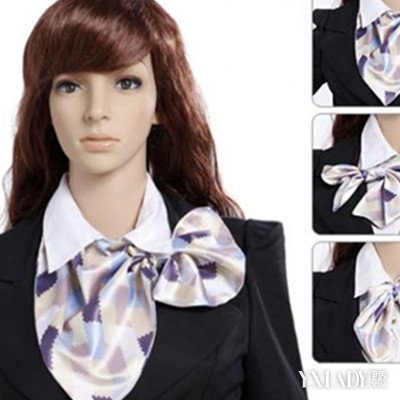 2打法二:漂亮的清香茉莉结白色系是都市女性上班最常穿的色彩。几乎所有的上班族都能穿出这样的打扮,但要怎样才能比别人更出色呢想要穿出优雅味道,脖子间的风情少不了,小小点缀就能成就一个清新派佳人,在OFFICE里散发淡淡茉莉香。时尚解析:利用美丽的丝巾结成花状系在颈侧,不仅使脸庞增色,造型也更具立体感,达到画龙点晴的效果。建议最好选用质地轻柔的浅色调丝巾,将丝巾系得稍斜一点效果会更好。