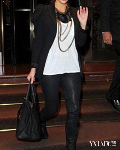我们总以为丰满的MM不适合穿皮裤,其实只要选择合适了也一样能穿出性感。选择一条简洁的没有任何装饰的皮裤,搭配耸肩西服和及踝靴,再来一条夸张的项链,非常有ROCK范儿。