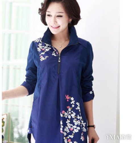 妈妈们总是有着知书达理,温文尔雅的一面,那这款宝蓝色的上衣最是适合妈妈的气质了。优雅立领设计,拉下拉链可作为翻领穿着,更具有实用性,靓丽印花,时尚优雅,衬出妈妈们的成熟气质,袖口折边,抽褶,订花型纽扣,个性漂亮,这样的衣服妈妈怎么会不喜欢呢?
