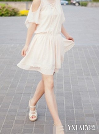 露肩设计的连衣裙,米白色的配色,搭配着因为雪纺而十分飘逸的裙摆,显得仙气十足,对此,穿着者选择加入的是同色系的米白色罗马凉鞋,不仅穿起来很舒服,同时与整体的气质很相配。