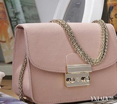 又是一款非常精致的斜挎包,粉色很适合春夏季。表面打磨抛光处理后摸起来手感很不错,特别的是它的五金锁扣设计,一般人可轻易打不开,链条很时尚,色泽和质量都是不错的。