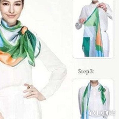 2、 职场中的简约彩色精神1:抓住长巾短边的一角,将一边折成风琴褶。 2:在风琴褶的上半部分打一个结。 3:将有结的一边搭在肩部一侧。 4:将另一侧环绕脖子一圈后,将剩下的丝巾一角穿入结中拉出,整理完好。
