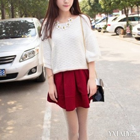 03 超短款羊羔毛大翻领外套搭配酒红色高腰中裙,令你的下身像变魔术般看起来异常修长,无论你自身个子的高矮与否已经不重要了,重要的是整体看起来真的是显高又显瘦哦~