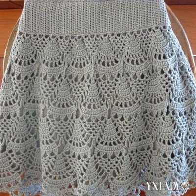 6、四片织好后挑织缝合,美丽的毛线裙完成。
