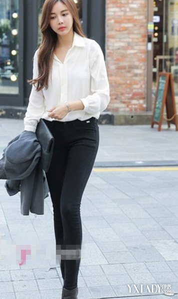 搭配看点:经典又利落的黑白搭配,上身穿一件简约女神范儿的白色雪纺衬衫,下身搭配一条同样极简风的黑色紧身牛仔裤,上宽下窄的穿搭非常显瘦,此时在脚上搭配上一双与裤子深浅相似的深灰色踝靴,在视觉上可以将你的双腿无限延长,瞬间变身超模身材哦!建议想要显瘦又显高的MM们不妨尝试一下这身穿搭。搭配纯黑色的踝靴虽然也可以达到显高效果,但是在春末夏初的时节来说未免太厚重,所以深灰色是不错的选择哦!