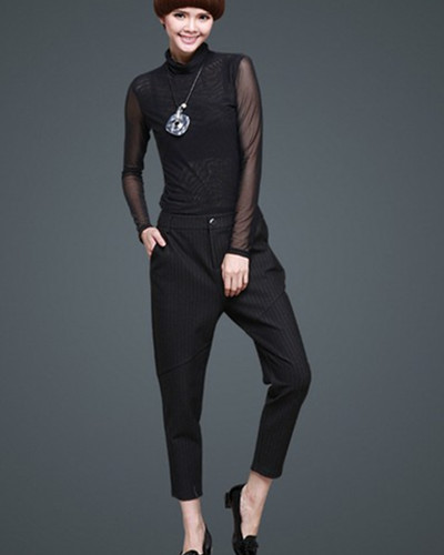 说到常规百搭款,就是这条九分裤啦。因为纯色更易搭配,如果你选的又恰好是经典色那就更加百搭了。拥有这条小脚裤,能让你Hold住任何场合,还能穿着它安然度过春夏秋天哦。