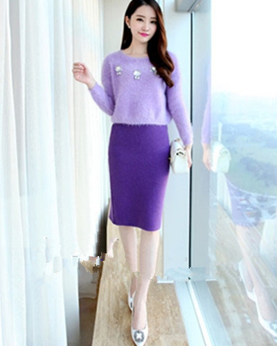 搭配看点:此款造型适合优雅轻熟的MM,兰紫色是今年时尚界最流行的色彩之一,搭配同色系一步裙,很有名媛范儿。白色细高跟鞋和OL通勤包让造型更加甜美气质。