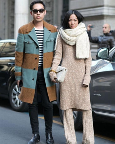 嫌光腿穿毛衣裙太冷,那不妨再穿一条毛衣裤,这样的套装形式不常见吧。不错,如果你是大胆并且够具时尚力,那就这么穿吧,让人无法模仿。