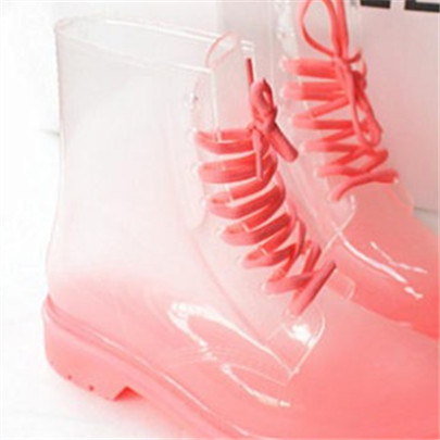 现在雨鞋可以是透明的,可以是绑带的,可以是印花,也可以是糖果色,可以是甜美的渐变色,雨鞋也可以穿出很多花样,雨鞋可以在下雨天行走不湿脚,更可以是下雨天的靓丽风景线。